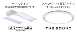 付属のワイヤレス送信機をつなぐことで、テレビの音声を天井から再生することができるスピーカーを内蔵したLEDシーリングライト。従来は角型デザインの「パネルタイプ」のみだったが、丸型デザインの薄型タイプが加わり、デザインで選択することができるようになった。