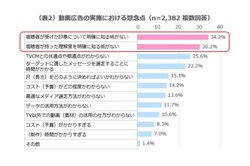 重要視される動画広告だが、実施に際しての課題や不安としては、最も多いのが「視聴者が受けた印象について明確に知る術がない」ことで34.2%、次いで「視聴者が持った理解度を明確に知る術がない」で30.2%となった。