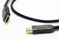 ガラス光ファイバーと銅線を、らせん構造のステンレス鋼/防弾チョッキにも使われる軍用グレードケブラー繊維/柔軟で伸びが良いTPUの3層構造で被覆したアクティブ式のHDMIケーブル。最大伝送帯域は18Gbpsで、4K UHD@60 4:4:4までの信号を電源供給なしで最長100mまで伝送可能。