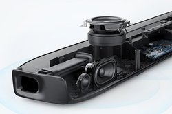 端子類はHDMI、HDMI ARC、光デジタル入力およびAUXポートを装備。4K HDRパススルー、Dolby Visionパススルーにも対応する。USB入力も1系統備える。Bluetoothはバージョン5に対応、SBCコーデックをサポートする。外形寸法は約930×120×61mm、質量は約3.3kg。