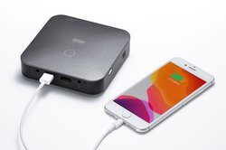 USBポートを搭載しており、別途ケーブルを使用してモバイルバッテリーとしても機能する。そのほか3.5mmステレオミニジャック、底面には三脚穴を装備。付属品にはHDMIケーブル、ACアダプターを同梱する。