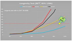 「Ritek Pro“CG”」の優秀な品質は、記録を書き込む際の「エラーレート」「ジッター値」、ディスクの機械的な特性を表す指標となる「反り値」「偏心値」など、さまざまな評価データの実験結果からも明らかとなっている。そのひとつである、アーカイブメディアとして期待される光ディスクの期待寿命を推定する「寿命加速試験」では、温度80℃・湿度85%という厳しい加速環境条件下の120時間以上にわたる試験において、もっとも安心して長期間にわたり劣化なく使用できるディスクであることが証明された(別表)。それぞれの評価データの詳細な結果については、改めて次回、お届けする予定だ。