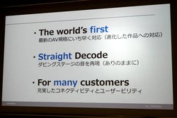 同社AVアンプ開発の3つの基本方針である、「The world's first」(最新AV規格にいち早く対応)、「Straight Decode」(ダビングステージの音を再現)「For many customers」(コネクティビティとユーザービリティの充実)に則り、従来モデルの音質にさらに磨きをかけると共にオーディオ・ビジュアルの最新規格への対応を図ったモデルとなる。