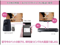 またスマートフォンに貯めたペットの画像を、「おうちクラウド」アプリでパナソニックの録画機「ディーガ」に転送・保存して、大画面テレビに再生することもできる。