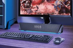 横幅は418mmで、19インチから24インチのPCモニターやテレビに適したサイズ感とのこと。外形寸法/質量は418W×76H×81Dmm/約928g。スピーカー本体の下部には7種のLEDライトを搭載する。また液晶ディスプレイにて音量や接続モード(AUX/Bluetooth)の状態を表示する。