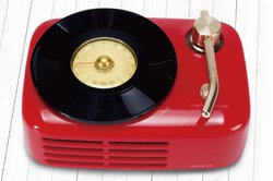 本体は光沢感のあるポップなレッドと、 マット仕上げのシックなブラックの2色を用意。程良いボリューム感のある外観でインテリアアイテムとして、またアナログオーディオ世代へのギフトとしても最適だとしている。外形寸法は160W×79H×109Dmm、質量は約600g。