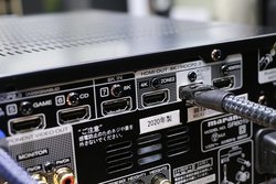 HDMI端子は7系統の入力と3系統の出力を装備。うち入力1系統と出力2系統が8K/60pおよび4K/120p映像信号のパススルーに対応するほか、全ての端子が著作権保護技術「HDCP 2.3」に対応。8Kアップスケーリング出力や、本機がスタンバイ状態でも入力信号を出力するHDMIスタンバイスルーにも対応する。