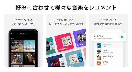 ユーザーの視聴傾向をもとに「楽しいとき」「恋するとき」など今の気持ちやムードに合わせた楽曲が聴ける「ステーション」、好みの楽曲を毎日集めて提案する「今日のミックス」、視聴している楽曲から好みの曲を自動再生する「オートプレイ」機能を新たに追加。レコメンドによる新しい音楽との出会いをサポートする。