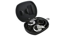 ヘッドホンの着脱式ケーブルを取り付けたまま収納できるデザインのため素早く取り出せるほか、プラグアダプターなどの小物を収納できるメッシュポケットを同梱。外装には滑りにくい合成皮革素材を採用。片手でも取り扱いやすく、フライトケースやレコードバッグにもすっきりと収納できるスリムで丸みを帯びたフォルムにデザインされている。