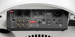 F Twoは、205mm径ドライバーと150WのクラスDアンプを搭載するモデル。周波数特性は27Hz-85Hz(-6dB)で、SPLは103dB。入力端子は光デジタル、同軸デジタル、3.5mmアナログを各1系統ずつとRCAを3系統(L、R、LFE)、出力端子はXLRを2系統、RCAを3系統(L、R、LFE*2台以上のF Twoをデイジーチェーン接続して使用可能)搭載する。外形寸法は362W×300H×362Dmmで、質量は8.5kg。