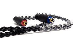 シルバーコートOFC線と極細OFC線のハイブリッド導体に加えて3重シールド/2重ツイスト構造を採用。導体抵抗値を抑えつつオーディオ信号の伝達ロスを防止し、周波数全域でSN比向上を実現したとする。また、L字プラグ/分岐部のY字スプリッター/Pentaconn Earコネクター部にはヘアライン加工を施した半艶消しブラックのメタルパーツ、被覆には日本製の黒PVC素材を採用する。