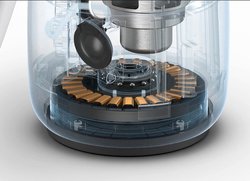 ディスプレイと完全に筐体を分けた円筒形の本体には1基のウーファーと2基のトゥイーターによる2.1chオーディオシステムを内蔵。迫力あるサウンドが楽しめる。設置した部屋の音響特性を自動解析して、サウンドの聴こえ方をベストコンディションに合わせる「Adaptive Sound」機能も備える。