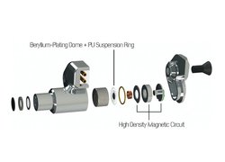 ドライバーはドームをベリリウムでコーティングし、ポリウレタン製のサスペンションリングで囲むことで剛性と柔軟性を両立。さらにドライバーの根元には、超軽量・低インピーダンスCCAWコイルとN52高性能外磁型磁気回路を搭載した。