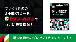 U-NEXT、30日間見放題プリペイトカードを全国セブン-イレブンで販売開始