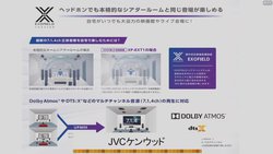 JVCケンウッドでは、7.1.4chサラウンドをスピーカーで聴いているように再現するワイヤレスヘッドホン「EXOFIELD THEATER」をアピールした。8月上旬に発売されたモデルで、想定価格は税抜100,000円前後となる。