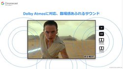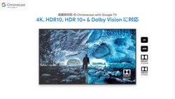 スペック面では、4K、HDR、HDR10+、Dolby Visionに対応する。またサウンドではDolby Atmosにも対応。テレビ自体をホームオーディオとしても利用できる。また、スマートフォンなどからのキャスト再生にもこれまで通り対応する。