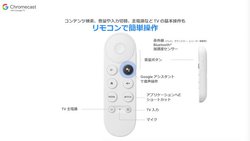 従来のChromecastはリモコンがなくスマートフォンからのキャストで利用するスタイルだったが、今回は新たにリモコンが付属する。手のひらに馴染むサイズを採用し、コンテンツ検索や音量、入力切り替え、主電源といったテレビの基本操作も行える。
