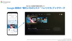 またユーザーがスマートフォンなどでコンテンツをGoogle検索した際に、ブラウザ上に表示される「観たいものリスト」アイコンから、コンテンツのブックマークが可能。ブックマークしたコンテンツは、いつでもリストから選んで再生することができる。