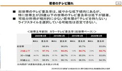 一方で、有料ネット動画配信サービスの月額料金に比べ、NHKの放送受信料が高い点も指摘。ネット配信サービスだけでなく、諸外国の公共放送料金の状況とも比べながら、このことが若者のテレビ離れにも影響するのではないかと危惧し、NHKが自ら掲げる三位一体改革を進めることを期待した。