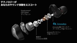 高いコストパフォーマンスに加え、より音質にこだわって開発したという完全ワイヤレスイヤホン。Knowles社のBAドライバーと8.6mmダイナミックドライバーのハイブリッド構成を搭載し、さらに独自のクロスオーバー技術を採用。高/中/低の3音域をドライバー特性にあわせてバランス良く分離することで、重厚感のある低音域、クリアな中音域、透明感のある高音域による音の深みが味わえるとしている。