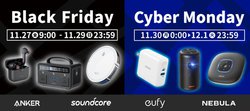 11月30日00:00〜12月1日23:59に開催されるサイバーマンデーでは、Android TV 搭載モバイルプロジェクター「Nebula Capsule II」や吸引・水拭きの両方が可能な2-in-1ロボット掃除機「Eufy RoboVac G10 Hybrid」等が登場予定。
