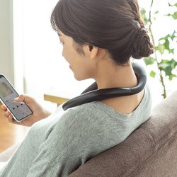 最大出力3Wの、首にかけるタイプのBluetoothスピーカー。「音を身に着ける」をコンセプトとしており、スピーカーユニットの位置と角度にこだわった内向き設計で小音量でも音を明確に聴き取ることができ、音楽や通話を楽しめるとアピールする。
