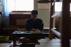 沈金のなかで金粉を定着させる工程は、輪島塗で知られる漆の産地である、石川県輪島の漆職人に依頼。麻の葉文様の細かい溝に漆を塗り込み、立体的に輝くように金粉を塗り重ねていくという高い集中力と技術が必要となる工程を、熟練した名工が手がけている。