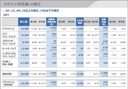 セグメント別の業績見通しも修正した。アプライアンスは、堅調な販売とコストコントロールを織り込んで売上高、利益とも上方修正。ライフソリューションズは、コロナ影響の縮小と空質関連事業での増販、固定費削減などにより売上高、利益とも上方修正。コネクティッドソリューションズは、コロナの長期化により売上高、利益とも下方修正した。オートモーティブは、自動車市場が想定より早期に回復して上方修正。円筒形車載電池でも上方修正した。インダストリアルソリューションズは、車載向けの市況が改善するなどで上方修正した。