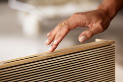 設置環境に応じたサウンドステージ設定が可能で、置き方によって音響特性を180度から360度に自動的に変更する。横向きに水平配置すると、ダイナミックな低音再生と、本体を中心として部屋全体に音楽が届くように拡がりあるサウンドに自動設定。垂直に配置するとクリアで豊かなステレオサウンドを前面に広げるとのこと。また別売りのBeosound Level 壁掛けブラケットで壁に配置すると、包み込むようなサウンドを鳴らしながら、固定することで充電も可能となる。