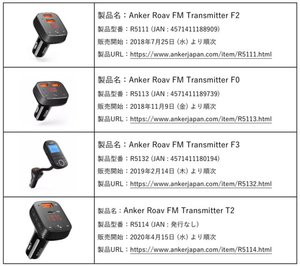 アンカー・ジャパンは、2018年11月より販売を開始した「Anker Roav FM Transmitter F0」、ならびに製品機能が類似する3モデルの自主回収および、返金の手続きを行うと発表した。