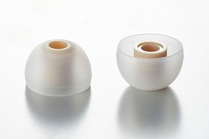 イヤーピースは2種類が付属。芯材とドーム部分で異なる硬度のシリコンを組み合わせ、15dBの遮音性を実現したハイブリッドイヤーピースと、Ag+抗菌剤を添加したイヤーピースを同梱する。