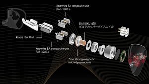 4基のBAドライバーは中高域を受け持ち、厚みある情感豊かなボーカル、華やかな高域の広がりや楽器の明確な配置、コンサートホールのような広い音場を再生するとしている。