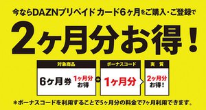 こちらのキャンペーンはセブン-イレブン(3月22日〜4月4日 ※一部取扱いのない店舗あり)、ファミリーマート(3月23日〜4月5日)、ローソン(3月23日〜4月5日)で実施。なお、DAZN for docomoやキャリア決済、Apple App Store(iTunes)支払いなどをしているユーザーは、DAZNプリペイドカード(POSAカード、PINコードなど)の専用コードを利用できない。