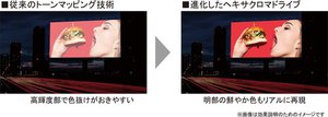また、同社独自の高画質技術「ヘキサクロマドライブ」も進化。従来モデルでは光を得意とするトーンマッピング技術1種類だったため、高輝度部分の色抜けが起きやすいという弱点があったが、今回より光が得意なトーンマッピング/色が得意なトーンマッピングを動的に変化させるため、明部の色情報も鮮やかに再現できるとしている。「AI HDRリマスター」「4Kファインリマスターエンジン」などの技術も引き続き搭載。