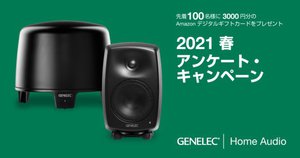 ジェネレックジャパンは、ホームオーディオ向け製品“Gシリーズ”“Fシリーズ”のユーザー・新規購入者を対象に、3,000円のAmazonデジタルギフトカードをプレゼントする先着100名限定の「2021春 アンケート・キャンペーン」を、本日4月28日正午より開催する。