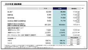 2021年度の業績見通しでは、売上高9兆7,000億円、営業利益9,300億円、純利益6,600億円を見込む。売上高は金融分野で大幅減収を見込むものの、映画分野で大幅増収ならびにG&NS分野及びEP&S分野で増収を見込むことなどにより、2020年度比で増収を見込んでいる。