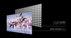映像面では、新開発の高コントラスト4K倍速液晶パネルと、スリム直下型高輝度LEDバックライトを搭載したパネルを装備。レグザ独自のガンマ特性、輝度特性のレグザ専用チューニングで液晶レグザの新たな高画質を実現したとアピールしている。