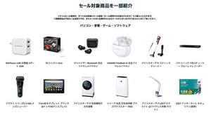 セール対象製品の一例として、ゼンハイザーやファーウェイの完全ワイヤレスイヤホン、PCエンジンミニ、RAVPowerのUSB充電器、パナソニックのBDレコーダー、ブラウンのシェーバー、Fire HD 8などが挙げられている。