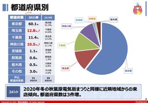 副会長の中阿地信介氏からは、2021年春の秋葉原電気街まつりのお客様アンケートの集計結果が紹介された。その開催期間であった2021年3月19日から5月5日は、コロナ禍の中で蔓延防止措置(4/12〜4/24)や緊急事態宣言発出(4/25〜5/5)の期間が含まれており、これらの対策による秋葉原来訪者の動向への影響がうかがわれるものとなった。