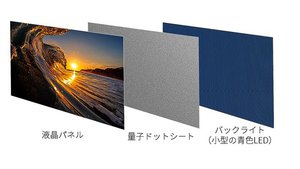 こうして細かなエリア駆動によって、描写する映像に応じて各エリアのLEDの点灯・非点灯をきめ細かく制御し、電力を効率的に活用。2,000nit(cd/m2)以上の高いピーク輝度と、100万:1以上の高コントラスト比を実現したという。また、量子ドット技術によりバックライト光の波長変換を行うことで、従来機比約1.2倍の広色域表現も可能にした。
