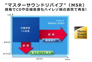 MSRで復元を行うことにより、圧縮音源やCD音質の音源であっても、ハイレゾ音源に迫る音質(96kHz/24bit)でワイヤレス再生できるとのこと。なおアップデートでは、Android10以降の端末を対象に、楽曲が表示できない不具合や軽微な不具合の修正、楽曲保存フォルダと読み込みフォルダ設定のUI変更も行われている。