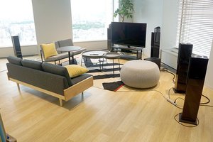 既報の通り、NTTぷららは本社オフィスをリニューアル。4Kやドルビーアトモス対応のホームシアタースペースも備えるなどした新オフィスの様子を、一部メディアに向けて公開した。