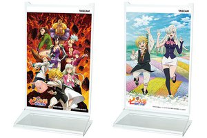 さらに、A5サイズの大判オリジナルヘッドホンスタンドも用意。ヘッドホンに起用したメインキャラクター8名が並んだティザービジュアルイラストと、一面の花畑でメリオダスとエリザベスがほほ笑む姿が描かれた描き下ろしイラストの2種類をラインナップする。