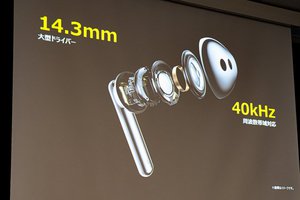 ドライバーには、14.3mmの40kHz高周波レンジドライバーを搭載。低音増強のパワーエンジンにより、低音を50%向上させた。さらに開放型で起こりがちな、音漏れによる音質のロスに配慮。どのくらいの音漏れがあるかをAIで分析して補正することで、「開放型でも良い音質」を追求したという。