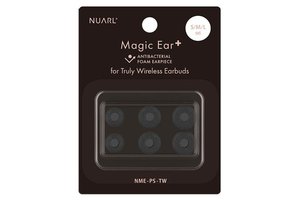 プレゼントされるMagic Ear+ for TWEは、フォームタイプの遮音性とシリコンタイプの利便性を兼ね備えたという、抗菌仕様の完全ワイヤレスイヤホン用イヤーピース。S/M/Lの3サイズ1セットとなっている。
