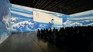 江戸時代の5人の絵師たちの歴史的作品が、超高精細な巨大プロジェクションアートとして蘇るエキシビジョン『巨大映像で迫る五大絵師ー北斎・広重・宗達・光琳・若冲の世界ー』が、7月16日(金)に開幕した。期間は9月9日(木)まで。会場は東京・大手町三井ホール。