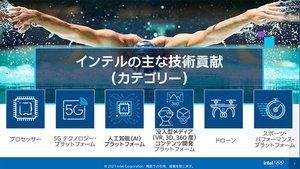 インテルは、間もなく開幕を迎える東京2020オリンピックへの技術貢献の内容を発表する記者会見をオンラインで開催した。インテルは2024年までワールドワイドオリンピックパートナーとして、5GやVR、360度コンテンツやドローン、AIといった最先端技術でオリンピックをサポートする。