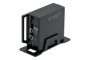 テレビなどに接続することで、Bluetooth接続が行えるようになる送受信ユニット。接続は3.5mmステレオミニ接続となり、1系統の音声入力、2系統の音声出力を備える。