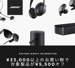 ボーズは、公式オンラインストアにて5周年記念キャンペーンを開催。8月10日23:59までの期間中、33,000円(税込)以上購入で5,500円割引が適用される。