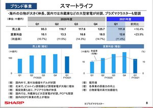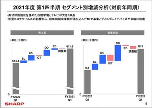 シャープ21年度1Q決算、高付加価値化を推進した白物やテレビが伸びて前年同期から大幅伸長